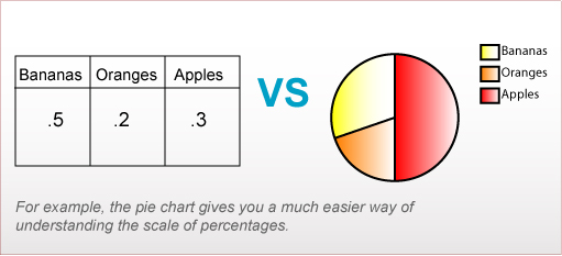 人更容易從圖片獲得信息,如,下面的信息通過表格和圓餅圖兩種方式顯示,效果明顯不一樣: