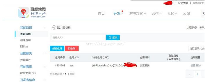 Referer白名單:指的是誰可以訪問你的應用,通過什么方式訪問你的應用,這里填寫一個星號' * ',意思是全部人都可以訪問,因為只是做測試可以這樣做,到以后項目如果使用到,會有相關的加密方式等等!!然后點擊提交完成創建!!