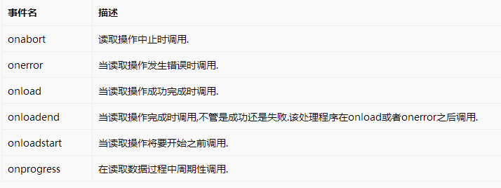 使用FileReader對象,web應(yīng)用程序可以異步的讀取存儲在用戶計算機(jī)上的文件(或者原始數(shù)據(jù)緩沖)內(nèi)容,可以使用File對象或者Blob對象來指定所要處理的文件或數(shù)據(jù).