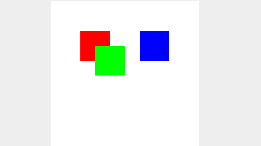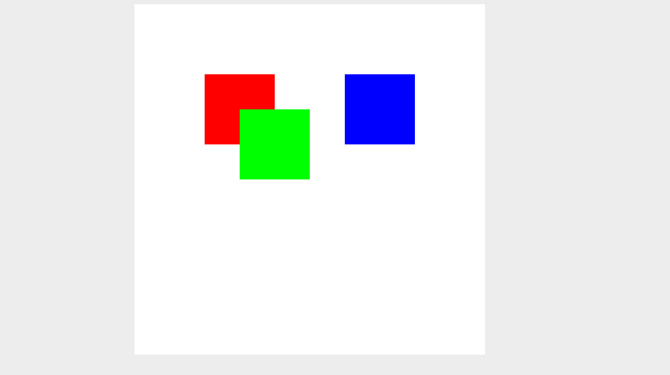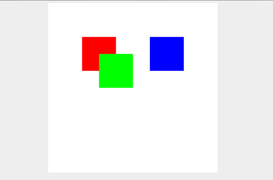 class Block { // ...省略部分代碼 constructor ({ w, h, x, y, color, Canvas, hierarchy }) { // 初始化設置色塊相關屬性 this.w = w this.h = h this.x = x this.y = y this.color = color this.Canvas = Canvas this.hierarchy = 0 }}class Canvas { // ...省略部分代碼 constructor (ele) { this.canvas = ele this.ctx = this.canvas.getContext('2d') this.blockList = [] // 事件綁定(這里有一個要注意的,我這里用了bind方法,是為了將“mousedownEvent”方法內的this指向切換到Canvas) this.canvas.addEventListener('click', this.mousedownEvent.bind(this)) // 點擊事件 this.nowBlock = null // 當前選中的色塊 } createBlock (option) { // 創建色塊函數(這里的Block是色塊的類) option.Canvas = this // 創建最新的色塊的層級應該是最高的 option.hierarchy = this.blockList.length this.blockList.push(new Block(option)) this.rendering() } mousedownEvent (e) { // 點擊事件 const x = e.offsetX const y = e.offsetY // 獲取點中里層級最高的色塊 this.nowBlock = (this.blockList.filter(ele => ele.checkBoundary(x, y))).pop() // 如果沒有捕獲的色塊直接退出 if (!this.nowBlock) return // 將點擊到的色塊層級提高到最高 this.nowBlock.hierarchy = this.blockList.length // 重新排序(從小到大) this.blockList.sort((a, b) => a.hierarchy - b.hierarchy) // 在重新從0開始分配層級 this.blockList.forEach((ele, idx) => ele.hierarchy = idx) // 重新倒序排序后再重新渲染。 this.painting() this.nowBlock.mousedownEvent(e) // 只觸發選中的色塊的事件 }}// 這里我們還得加入第三塊色塊與紅色色塊重疊的色塊canvas.createBlock({ x: 150, y: 150, w: 100, h: 100, color: '#0f0'})