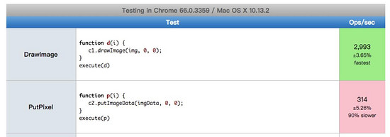 之前說過,我們通過對整個畫布保存快照的方式來記錄每個操作,換個角度思考,如果我們把每次繪制的動作保存到一個數組中,在每次執行撤銷操作時,首先清空畫布,然后重繪這個繪圖動作數組,也可以實現撤銷操作的功能??尚行苑矫妫紫冗@樣可以減少保存到內存的數據量,其次還避免了使用渲染開銷較高的 putImageData 。以 drawImage 為比較對象,看 jsperf 上這個測試用例,二者的性能存在數量級的差距。