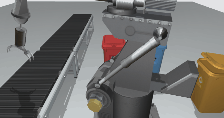 好了,準備工作做好了,下面來實現動畫部分,除了了解 垃圾分類 的方式外我還參考了網上很多機械臂的視頻,學習它的運動模式和動作細節,對每個結構和部位的動畫進行步驟的排序和構思。這里我挑選幾處動畫的實現方式來展示: