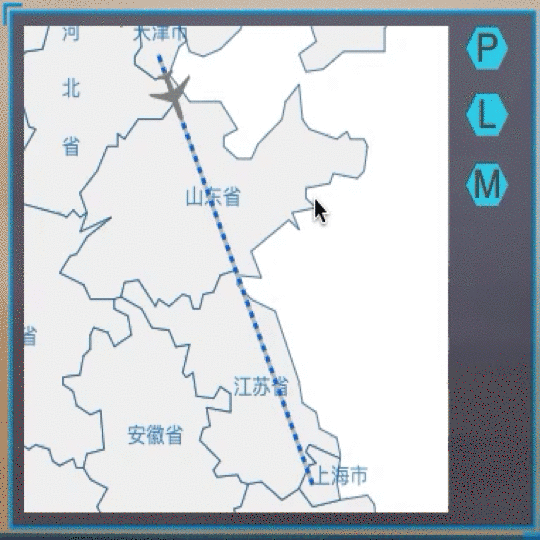 當然作為監控系統,自然要有監控了,增加右下角的小地圖,并提供三種模式,分別是聚焦飛機,聚焦飛行軌跡和聚焦地圖,并根據飛機的飛行方向控制飛行軌跡的流動效果,其中聚焦飛機會跟隨飛機移動進行 fitData ,使飛機一直處于小地圖的中心,代碼如下: