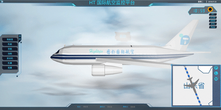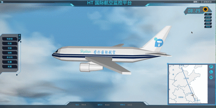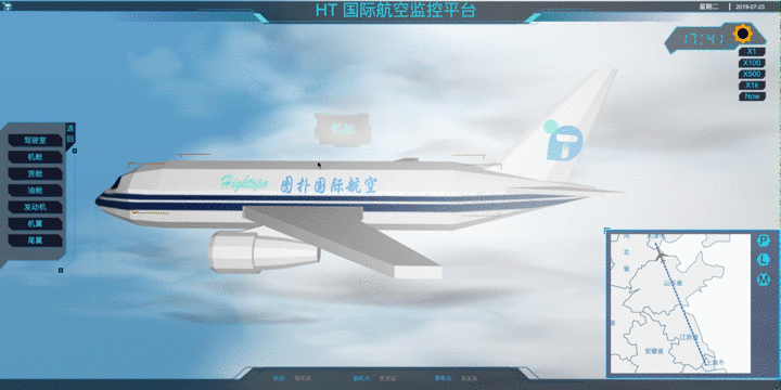 前些日子出差,在飛機上看到頭頂的監控面板,除了播放電視劇和廣告之外,還會時不時的切換到一個飛機航行的監控系統,不過整個監控系統讓人感到有一點點的簡陋,所以我就突發奇想制作了一個采用 HT for Web 的升級版監控系統,demo 的效果還行,發出來大家相互學習下。