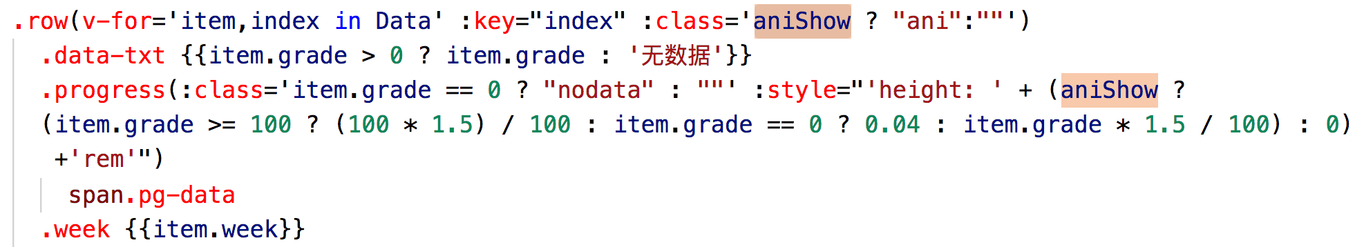 同樣,aniShow為true,progress的高度就會附上自己的目標值,也就是這個progress的實際高度經過百分制轉化后被賦予給了style屬性的height。
