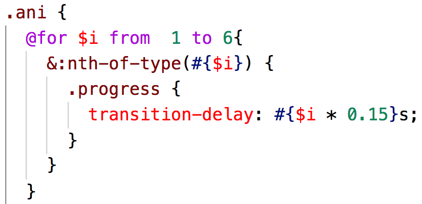 而ani類名下,progress的transition-delay實現了其高度錯開遞增效果。