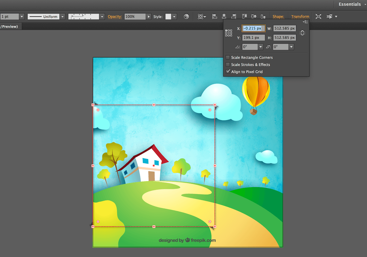 有幾種方式。因為我們已經(jīng)在圖形編輯器中(我的示例使用的是AI),我們可以使用編輯器的面板來獲取元素的位置和尺寸。