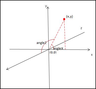 因為現在建立的是一個3D魔方,所以要畫出每個小矩形,需要知道小矩形的4個定點,而這4個定點會根據空間的旋轉角度而變換,所以為了計算出這4個定點坐標,需要知道魔方繞x軸和z軸旋轉的角度。