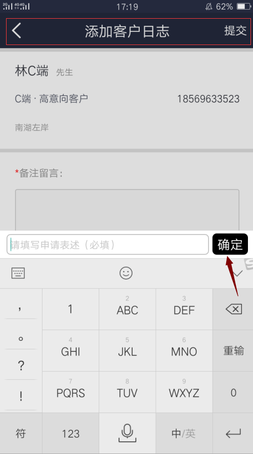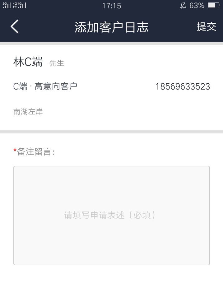 A頁面的頭部 "/OACustomer/CustomerDetail": { title: "客戶詳情", headLeft: [{ foreImage: "iconback", eventString: "gjj://Close.Page/1?jsCallBack=JC5wYWdpbmcuc2VhcmNoKCk7"}], headRight: [{ foreImage: "icondrop", type: "DropDownList", menus: [{ iconImage: "iconcontentchange", alpha: "100", text: "修改客戶信息", textSize: 16, textColor: "000000", backColor: "FFFFFF", eventString: "modiFicaTion()" }, ], }] },B頁面的頭部 "/OACustomer/AddLogView": { title: "添加客戶日志", headRight: [{ text: "提交", eventString: "submit()" }] }//js里配置的頭部 //這是放在B頁面上的 //提交 function submit() { var mes = $("form").validtor(); if (mes) { $.dialog.openDialogString(mes); return false; } var url = "/OACustomer/SubmitAddLog"; $.ajax({ type: "post", url: url, data: $("form").serialize(), dataType: "json", beforeSend: function () { }, error: function () { $.dialog.openDialogString("加載失敗,請重試"); }, success: function (data) { if (data.DictJsonStatus == 200) { //將填寫的日志 返回的json數(shù)據(jù) 填充到客戶詳情 $.zProtocol({ type: "Close.Page", path: "/1", success: 'DunnAge(' + JSON.stringify(data) + ')' }); } else { $.dialog.openDialogString(data.Msg); } } }) }//頁面內容<form action="/OACustomer/SubmitAddLog">//后臺提交數(shù)據(jù)的action(SubmitAddLog)<!------action 提交地址------><input type="hidden" value="@detail.Id" name="FkOACustomer"/><div class="remarks"><p><i style="color:#f00">*</i>備注留言:</p><p><textarea placeholder="請?zhí)顚懮暾埍硎觯ū靥睿?quot; class="js_inputbox" name="Remark" data-tipname="備注留言" data-valid='{required:true}'></textarea></p></div></form>取完數(shù)據(jù),點擊提交就會關閉一個頁面即B頁面,回到上一個頁面即A頁面。最后取到了數(shù)據(jù)顯示在A頁面的紅色框處了。