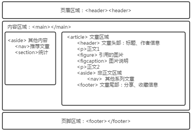 <article>:完整、獨立的內容塊;里面可包含獨立的<header>、<footer>等結構元素。如新聞、博客文章等獨立的內容快(不包括評論或者作者簡介)。