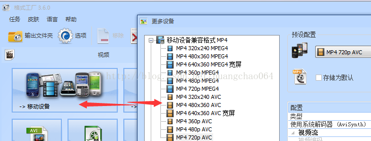 4、在格式化工廠里面找到AVC編碼的格式,如下圖