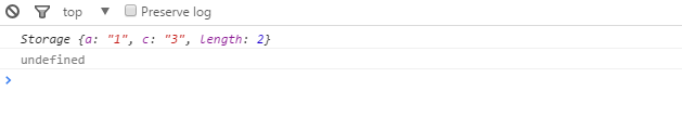 var storage=window.localStorage; storage.a=1; storage.setItem("c",3); console.log(storage); storage.removeItem("a"); console.log(storage.a);控制臺查看結果