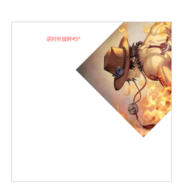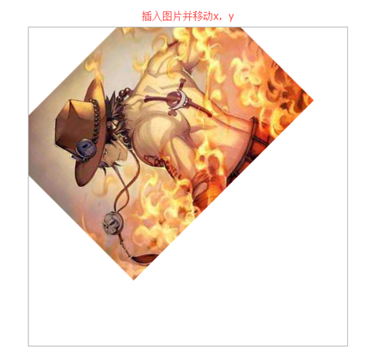 var img = document.getElementById('img')var canvas = document.getElementById('canvas')var ctx = canvas.getContext("2d")ctx.translate(200, 150)ctx.rotate(-Math.PI / 4)ctx.drawImage(img, 0, 0)