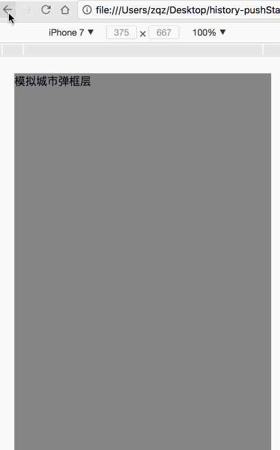 這種交互在H5頁面中比比皆是,點擊城市->彈出城市選擇浮層->按返回按鈕關閉浮層。