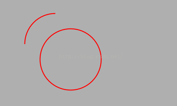 <!DOCTYPE html> <html lang="en"> <head> <meta charset="UTF-8"> <title></title> <style> *{margin:0; padding:0;} html, body{width:100%; height:100%; overflow:hidden; background-color:#AFAFAF;} </style> </head> <body> <canvas id="canvas"></canvas> <script> var canvas = document.getElementById('canvas'), context = canvas.getContext('2d'); canvas.width = document.body.clientWidth; canvas.height = document.body.clientHeight; context.lineWidth = 3; context.strokeStyle = 'red'; context.save(); context.rect(0, 0, 200, 200); context.clip(); context.beginPath(); context.arc(200, 200, 100, (Math.PI / 180) * 0, (Math.PI / 180) * 360, false); context.stroke(); context.closePath(); context.restore(); context.beginPath(); context.arc(250, 250, 100, (Math.PI / 180) * 0, (Math.PI / 180) * 360, false); context.stroke(); context.closePath(); </script> </body> </html> 效果
