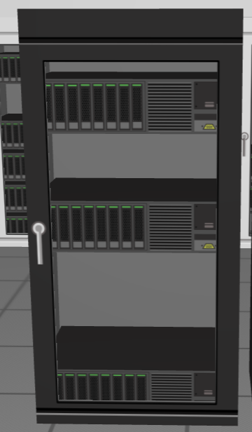 var C = E.Cabinet = function(obj) { var color = obj.color, doorFrontImg = obj.doorFrontImg, doorBackImg = obj.doorBackImg, s3 = obj.s3; var node = this._node = new ht.Node(); // 柜身 node.s3(s3);//設置節點的大小 為 setSize3d node.a('cabinet', this);//自定義 cabinet 屬性 node.s({//設置節點的樣式 為 setStyle 'all.color': color,//設置節點六面的顏色 'front.visible': false//設置節點前面是否可見 }); if (Math.random() > 0.5) { node.addStyleIcon('alarm', {//向節點上添加 icon 圖標 names: ['icon 溫度計'],//包含多個字符串的數組,每個字符串對應一張圖片或矢量(通過ht.Default.setImage注冊) face: 'top',//默認值為front,圖標在3D下的朝向,可取值left|right|top|bottom|front|back|center position: 17,//指定icons的位置 autorotate: 'y',//默認值為false,圖標在3D下是否自動朝向眼睛的方向 t3: [0, 16, 0],//默認值為undefined,圖標在3D下的偏移,格式為[x,y,z] width: 37,//指定每個icon的寬度,默認根據注冊圖片時的寬度 height: 32,//指定每個icon的高度,默認根據注冊圖片時的高度 textureScale: 4,//默認值為2,該值代表內存實際生成貼圖的倍數,不宜設置過大否則影響性能 visible: { func: function() { return !!E.alarmVisible; }}//表示該組圖片是否顯示 }); } var door = this._door = new ht.DoorWindow();//柜門 door.setWidth(s3[0]);//置圖元在3D拓撲中的x軸方向的長度 door.setHeight(1);//設置圖元在3D拓撲中的z軸長度 door.setTall(s3[1]);//控制Node圖元在y軸的長度 door.setElevation(0);//設置圖元中心在3D坐標系中的y坐標 door.setY(s3[2] * 0.5);//設置節點在 y 軸的位置 door.setHost(node);//設置吸附 door.s({//設置節點樣式 setStyle 'all.color': color,//設置節點六面顏色 'front.image': doorFrontImg,//設置節點正面圖片 'front.transparent': true,//設置節點正面是否透明 'back.image': doorBackImg,//設置節點背面的圖片 'back.uv': [1,0, 1,1, 0,1, 0,0],//自定義節點后面uv貼圖,為空采用默認值[0,0, 0,1, 1,1, 1,0] 'dw.axis': 'right'//設置DoorWindow圖元展開和關閉操作的旋轉軸,可取值left|right|top|bottom|v|h }); var serverList = this._serverList = []; var max = 6, list = E.randomList(max, Math.floor(Math.random() * (max - 2)) + 2); //global.js 中聲明的獲取隨機數的函數 var server, h = s3[0] / 4; list.forEach(function(r) { var server = new E.Server({ //服務器組件 color: 'rgb(51,49,49)', frontImg: '服務器 組件精細' }); server.s3(s3[0] - 2, h, s3[2] - 4);//設置節點大小 server.setElevation((r - max * 0.5) * (h + 2));//設置節點中心點在 y 軸的坐標 server.setHost(node);//設置節點的吸附 serverList.push(server);//向 serverList 中添加 server 節點 });};上面代碼中唯一沒提到的是 Editor.randomList 函數,這個函數是在 global.js 文件中聲明的,聲明如下: