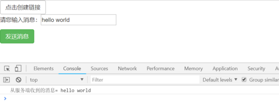 <!DOCTYPE html><html lang="en"><head> <meta charset="UTF-8"> <title>Title</title> <link href="https://cdnjs.cloudflare.com/ajax/libs/twitter-bootstrap/3.3.7/css/bootstrap.css" rel="stylesheet"></head><body><botton class="btn btn-default" onclick="createsocket()">點(diǎn)擊創(chuàng)建鏈接</botton><br><p>請您輸入消息:<input type="text" placeholder="輸入消息" id="msg"></p><buttom class="btn btn-success" onclick="send_msg()">發(fā)送消息</buttom><script> var ws = null; function createsocket() { ws = new WebSocket("ws://127.0.0.1:8001/ws"); ws.onmessage = function (data) { console.log("從服務(wù)端收到的消息=",data.data); } } function send_msg() { var to_msg = document.getElementById("msg").value; ws.send(to_msg) }</script></body></html>