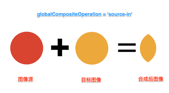 source-in :目標(biāo)圖形和源圖形重疊且都不透明的部分才被繪制