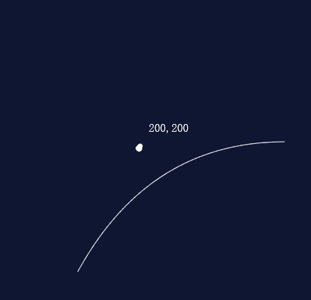 /** * 二次貝塞爾曲線動畫 * @param {Array<number>} start 起點坐標 * @param {Array<number>} 曲度點坐標(也就是轉彎的點,不是準確的坐標,只是大致的方向) * @param {Array<number>} end 終點坐標 * @param {number} percent 繪制百分比(0-100) */ function drawCurvePath(start, point, end, percent){ ctx.beginPath(); //開始畫線 ctx.moveTo(start[0], start[1]); //畫筆移動到起點 for (var t = 0; t <= percent / 100; t += 0.005) { //獲取每個時間點的坐標 var x = quadraticBezier(start[0], point[0], end[0], t); var y = quadraticBezier(start[1], point[1], end[1], t); ctx.lineTo(x, y); //畫出上個時間點到當前時間點的直線 } ctx.stroke(); //描邊 } /** * 二次貝塞爾曲線方程 * @param {Array<number>} start 起點 * @param {Array<number>} 曲度點 * @param {Array<number>} end 終點 * @param {number} 繪制進度(0-1) */ function quadraticBezier(p0, p1, p2, t) { var k = 1 - t; return k * k * p0 + 2 * (1 - t) * t * p1 + t * t * p2; }