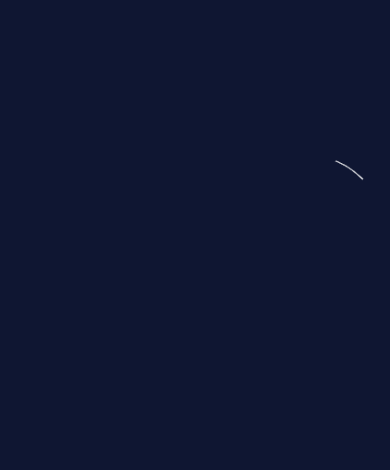 <!DOCTYPE html><html lang="en"><head> <meta charset="UTF-8"> <meta name="viewport" content="width=device-width, initial-scale=1.0"> <meta http-equiv="X-UA-Compatible" content="ie=edge"> <title>二次貝塞爾曲線動畫</title> <style> body { background: #0f1632; } #canvas { border: 1px solid #ccc; } #img { display: none; <!--img直接隱藏就行,后面會直接引用--> } </style></head><body> <canvas id="canvas" width="1500" height="750"></canvas> <img id="img" src="https://s3.imgsha.com/2019/04/22/light.png"> <script> var ctx = document.getElementById('canvas').getContext('2d'); var img = document.getElementById('img'); var percent = 0; var data = { start: [400, 200], point: [300, 100], end: [100, 400], department: '數據1', value: 4321 } function init(){ percent = 0; //每次重置進程 draw(); } function draw(){ ctx.clearRect(0, 0, 1500, 750); //每次清除畫布 ctx.strokeStyle = '#ffffff'; //設置線條樣式 drawCurvePath(data.start, data.point, data.end, percent); percent += 0.8; //進程增加,這個控制動畫速度 if (percent <= 100) { //沒有畫完接著調用,畫完的話重置進度 requestAnimationFrame(draw); }else{ init() } } function drawCurvePath(start, point, end, percent) //... } function quadraticBezier(p0, p1, p2, t) { //... } </script></body></html>