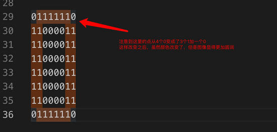 圖像感覺瞬間柔和了, 但是原本應該4個0充斥的地方變成了3個1加上1個0。這其實就是所謂的圖像平滑處理,為了解決鋸齒感覺,將原本的顏色改變,在充斥著較多顏色的圖片上,為了更自然,圖片的連接處變成了近似的顏色,這也解釋了為什么上面填充顏色的時候不是使用本色而是使用近似色。