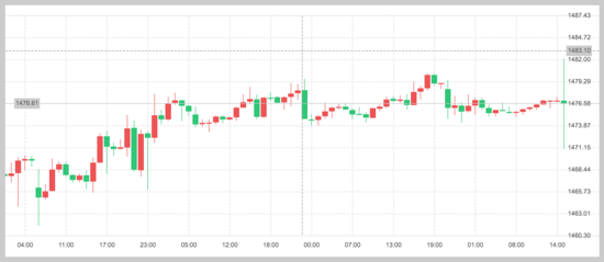 <div id="myCanvasBox" style="width: 1000px; height: 500px;"></div><script> let data = [ { "time": 1576648800, "open_price": "1476.94", "high": "1477.44", "low": "1476.76", "close": "1476.96" }, //... ]; let options = { sharpness: 3, blockWidth: 11, horizontalCells: 10 }; let kLine = new RenderKLine("myCanvasBox", options); //更新歷史報價 kLine.updateHistoryQuote(data); //模擬實時報價 let realTime = `{ "time": 1575858840, "open_price": "1476.96", "high": "1482.12", "low": "1470.96", "close": "1476.96" }`; setInterval(() => { let realTimeCopy = JSON.parse(realTime); realTimeCopy.time = parseInt(new Date().getTime()/1000); realTimeCopy.close = (1476.96 - (Math.random() * 4 - 2)).toFixed(2); kLine.updateRealTimeQuote(realTimeCopy); }, parseInt(Math.random() * 1000 + 500))</script>