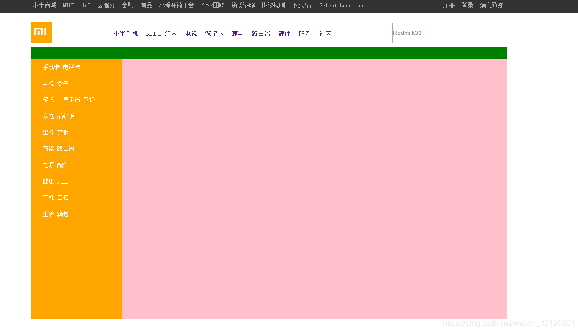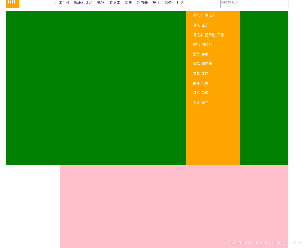 .banner { width: 1226px; height: 670px; background-color: green; margin: 0 auto;}.banner .bannerleft { float: left; width: 234px; height: 670px; background-color: orange;}.bannerright { float: right; width: 992px; height: 670px; background-color: pink;}