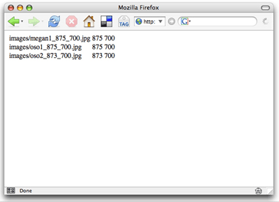 開發 ajax 幻燈片的第一步是結合 rest 數據服務。該例中使用 php 頁面返回所有可用的幻燈片圖像及其大小(寬和高)。所有圖像都放在 images 目錄中。文件名格式為 name_width_height.jpg,比如 oso1_768_700.jpg 表示該文件是我的狗 oso 的照片,寬 768 像素,高 700 像素。我堅持使用這種命名方式,因為這樣就很容易確定圖片的寬和高,而不用費力去打開 adobe® photoshop® 或 macromedia fireworks。