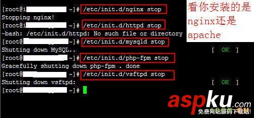 終止以下程序如:nginx、apache、mysql、php-fpm、ftp