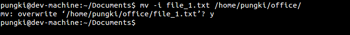 假設我們想將 file_1.txt 移動到 /home/pungki/office。同時,/home/pungki/office 目錄下已經有file_1.txt文件了。