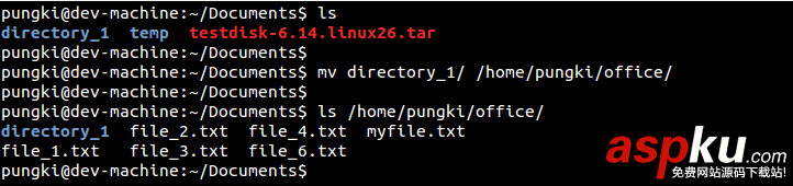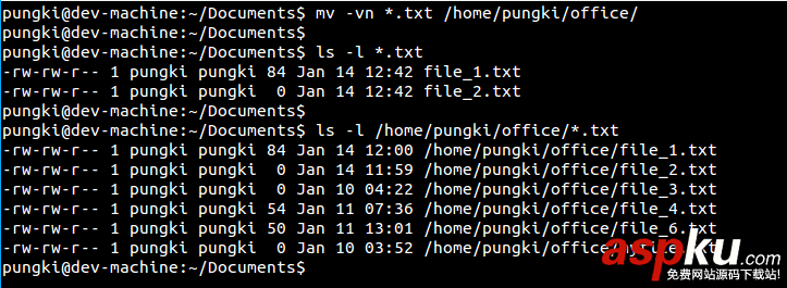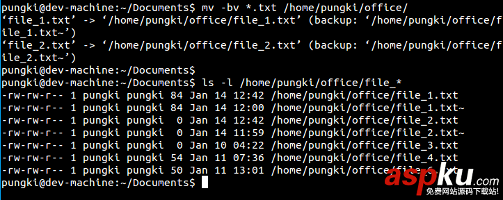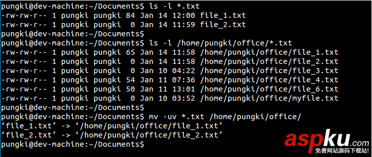我們用下面的命令將file_1.txt 和file_2.txt從當前目錄移動到/home/pungki/office