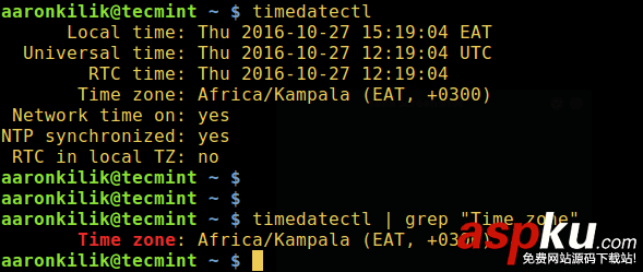 當你不帶任何參數運行它時,這條命令可以像下圖一樣,輸出系統時間概覽,其中包含當前時區: