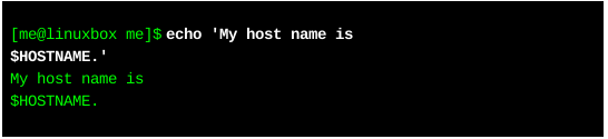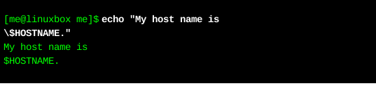 通過使用反斜杠符,shell解釋器忽略了對"$"符號進行解釋。既然shell已經忽略了"$",那么,shell解釋器也就不會對$HOSTNAME執(zhí)行字符替換了。