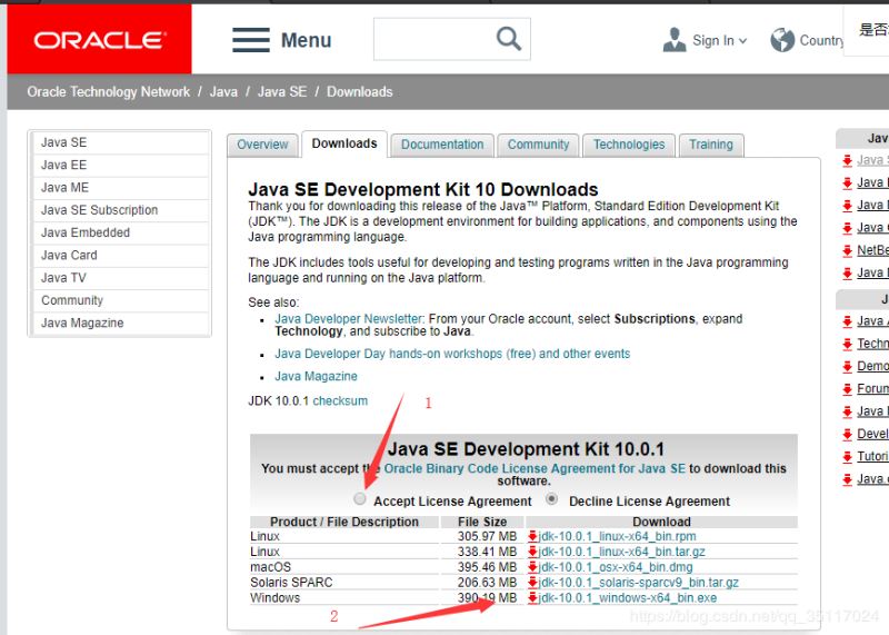 1.1 打開“http://www.oracle.com/technetwork/java/javase/downloads/index.html”網(wǎng)址下載相應版本的java安裝包,如下圖所示: