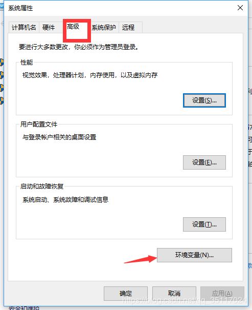 1.3 java安裝成功之后接下來進行環(huán)境變量的配置,在桌面【此電腦】右擊打開屬性界面,然后在左側選擇“高級系統(tǒng)設置”,在打開的頁面中切換到【高級】選項卡,然后點擊“環(huán)境變量”按鈕,如下所示: