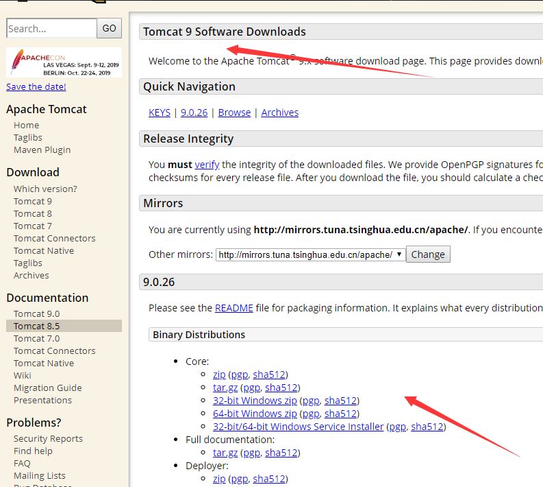 下載地址:https://tomcat.apache.org/download-90.cgi