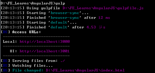 這時(shí)候運(yùn)行g(shù)ulp將等同于前文的browser-sync start --server --files "**"。更多的用法示例請(qǐng)查看gulp-browser-sync。