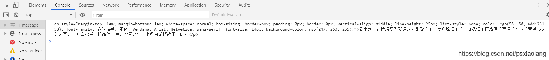 可以看出來轉換出的Jquery對象代表的是content中第一個html元素p,剩下的html元素獲取不到,也就無法進行第三步獲取圖片地址。