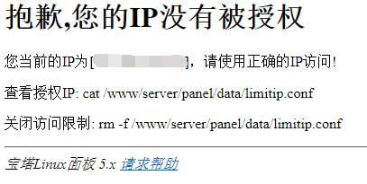如果使用非授權(quán)的ip地址登錄寶塔面板,就會提示抱歉,您的IP沒有被授權(quán)