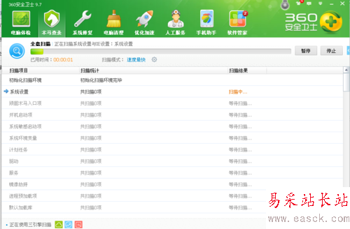6、點擊全盤掃描,則掃描全部磁盤文件,全面查殺木馬及其殘留。