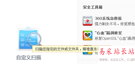 8、點擊自定義掃描,則掃描指定文件或文件夾,精準查殺木馬。