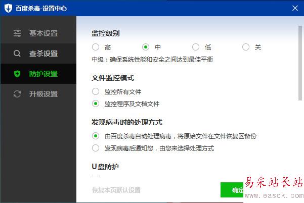 我們還可以設置實時監控的一些選項,點擊“菜單”,進入防護設置我們在這里可以設置一些監控參數