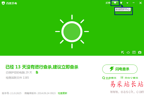 2、接著,點擊右上角的【安全防護中心】圖標,如圖所示。