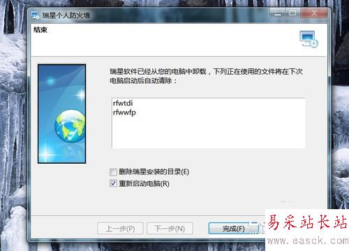最后按照提示,一路下一步,即可完成瑞星個人防火墻的卸載工作了,如下圖所示:
