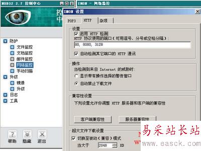 同樣,在訪問帶毒網頁時,如果網絡監控(IMON)-HTTP-當偵測到來自Internet的威脅時:選 顯示帶有操作選擇的警告窗口,則會出現提示窗口;選 自動禁止下載受文件,則不會提示。兩個選項的處理結果都是一樣的,自動按你在“其他”里的設定進行操作。