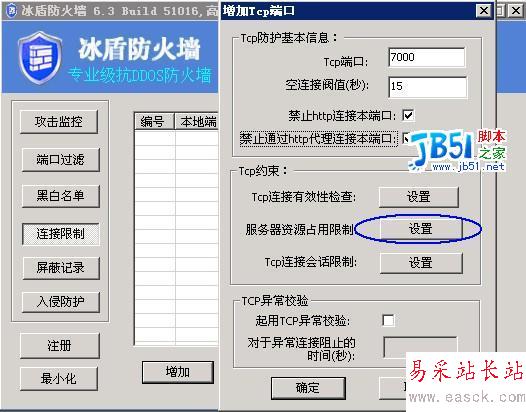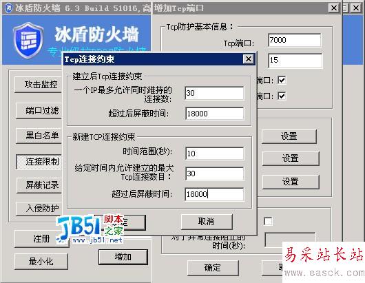 1、點左側“連接限制”按鈕,再點擊“增加”按鈕。