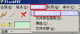 保存后,依次點(diǎn)擊Flashfxp菜單中 選項-參數(shù)設(shè)置