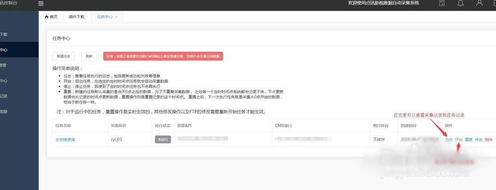 首先在你的CMS網(wǎng)站后臺(tái)添加好資源庫,并綁定好需要采集的分類。