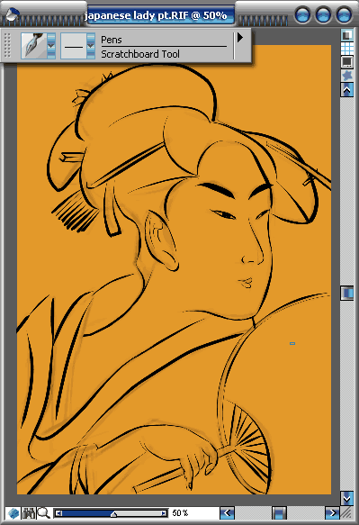 使用 8軟件結合wacom的intuos2數位板可以非常出色地完成一張數字式的“浮世繪”作品,尤其是在一些比較特殊的筆觸上,intuos2的筆鋒識別功能可以讓整個作品變得更加生動。在臨摹古代大師的作品同時,我們深切感受到了簡潔就是美。
