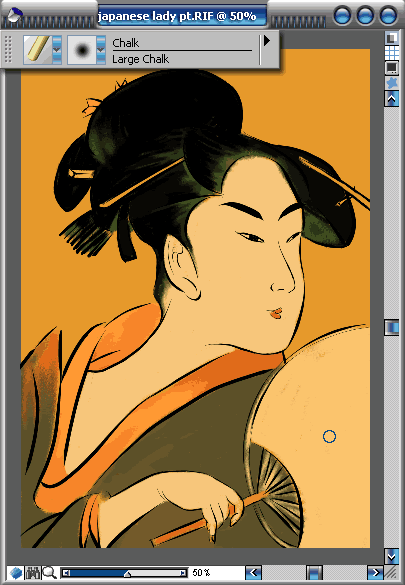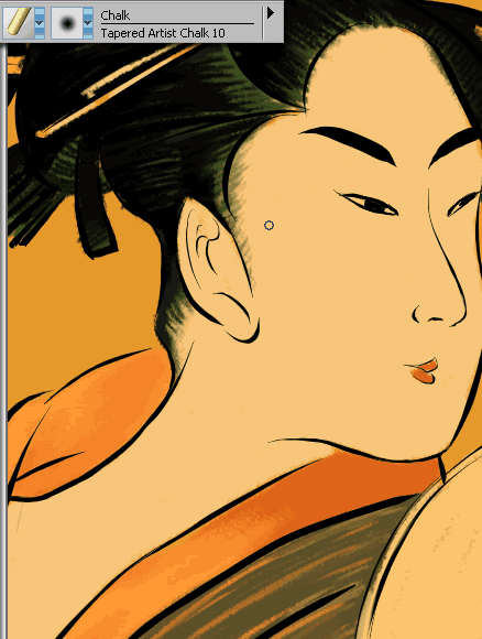 5.選用【chalk】/【tapered artist chalk 10】(粉筆/錐形藝術家粉筆10號)進行頭發細節的刻畫,同時畫出和服的花紋。